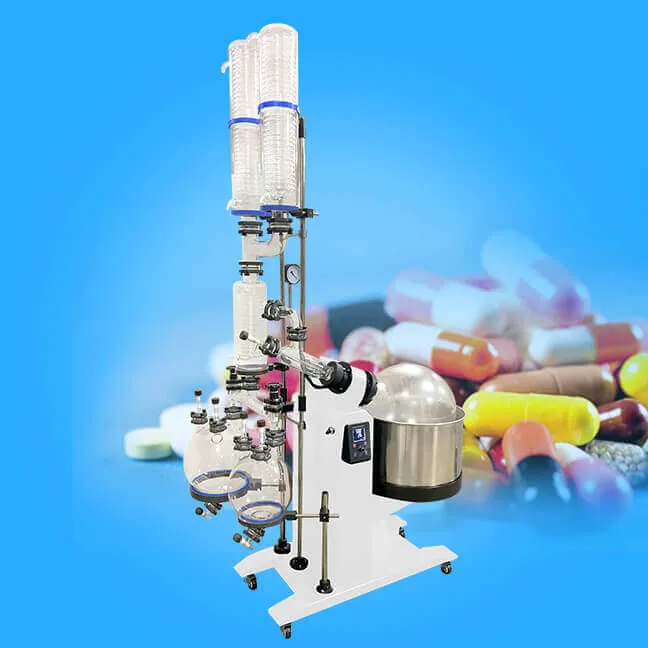 Rotációs bepárló elsősorban a gyógyszerészeti, kémiai és bio-gyógyszerészeti ipar koncentrációt, a kristályosodás, a szárítás, a szétválasztás és a helyreállítási szén felbomlása. Az elv: vákuum állapotban van, állandó hőmérsékletű fűtés, forgatni a palackok állandó forgatás, az anyag az oldalfal-formációban nagy területet vékony film, nagy párolgás. Solubilization által magas pohár kondenzátor vapor hűtés, helyreállítási gyűjtemény palackban nagyban javítja a hatékonyságát, a párolgás, különösen könnyű-hoz használ a magas hőmérsékletű változékonysága biológiai bomlása koncentrált, és tisztított.